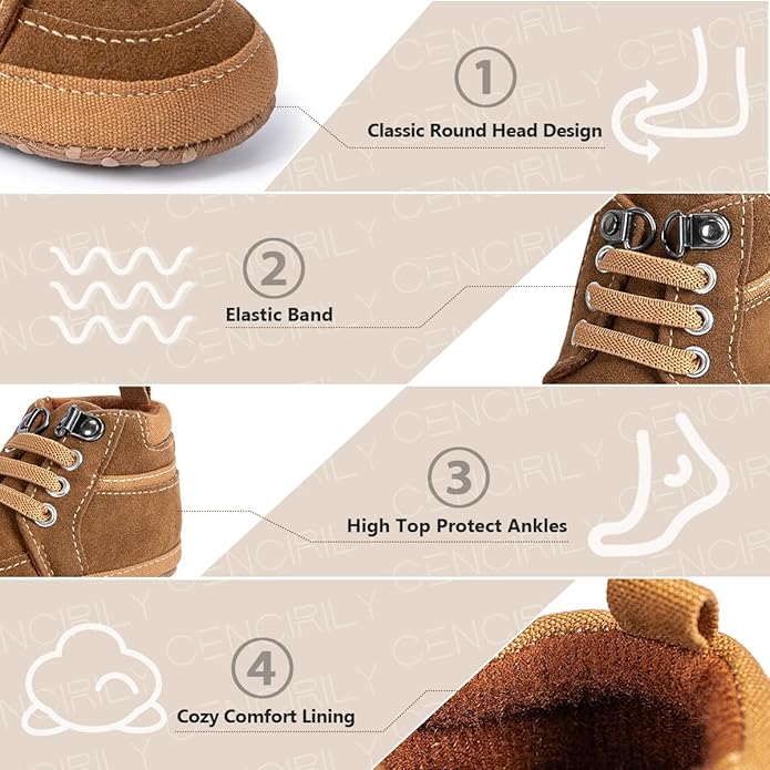 CENCIRILY Baby Boys Girls High Top Sneakers Soft Soles Anti Skid Infant Ankle Shoes Toddler Prewalker First Walking Crib Shoes