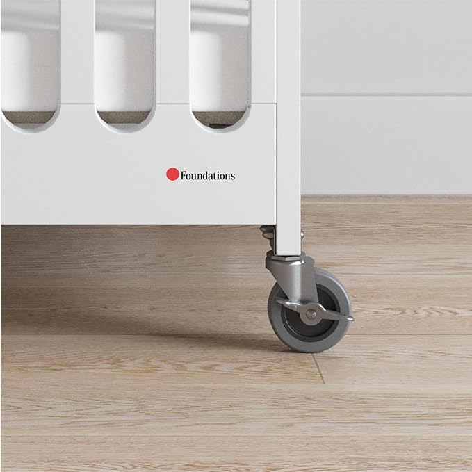 - Effortless Storage & Mobility - With four commercial-grade casters (two locking), itβs easy to move yet secure for child safety. Easy fold system fits compact in storage so you can maximize your space. Unfolded: 40β L x 25β W x 35β H; folded: 40β L x 13.5β W x 35β H.