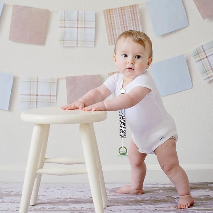 - Universal Design for Multifunctional Usage:These pacifier leashes can easy to clip on burp cloths, teething rings and toys, baby blankets, drool bibs to prevent your soothie,teether toy,teething ring from falling down and losting .