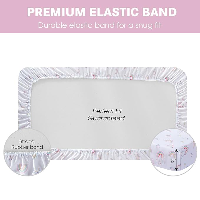 - Bright Pattern:Including colorful rainbow,pink elephants, stars patterns and pink 4-piece, these crib sheets girl are vibrant, cute and perfect for a little girl,which makes such an adorable addition to her nursery