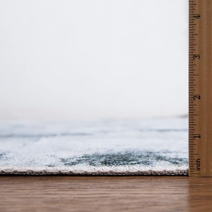 Bloom Rugs Caria Washable Non-Slip 5x7 Rug - Ivory/Silver/Blue Modern Abstract Area Rug for Living Room, Bedroom, Dining Room, and Kitchen - Exact Size: 5' x 7'