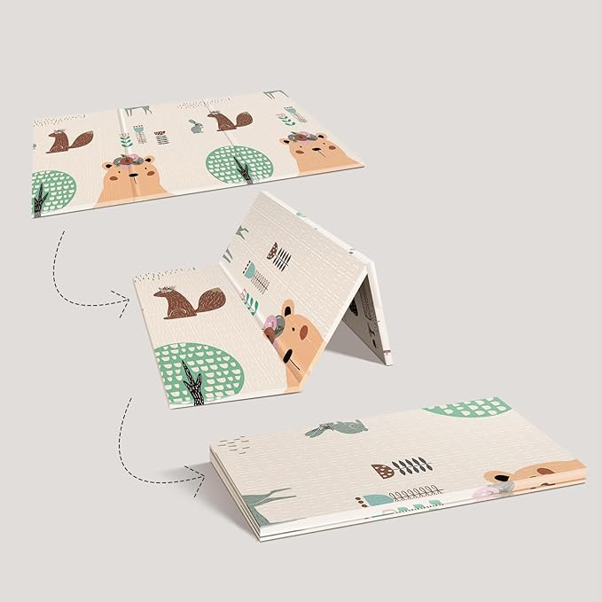- Easy to Clean: This foldable baby playmat is highly waterproof, with patterns and colors that resist fading. Spills, spit-ups, and food residues can be easily wiped clean with baby wipes or a damp cloth, keeping the mat looking like new