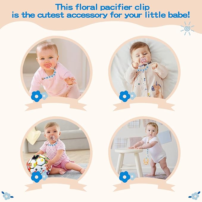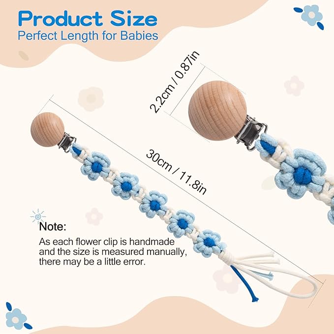 - 【Perfect Gift 】As each flower clip is handmade, there might be slight difference in size or appearance, making each one stand out! Pacifier clips for boys and girls, perfect baby shower gift or birthday gift. Create your unique pacifier clip today!