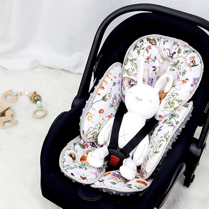 2 in 1 Infant Car Seat Insert, Car Seat Head Support Baby Girls Boys, Soft Newborn Carseat Insert Cushion, Perfect for Carseats, Strollers, Swings (Gray Animals)