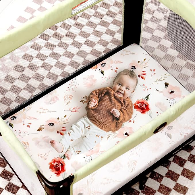 - Apple It Within Seconds: Thanks to the elastic bottom, our playpen fitted sheets come in a classic, pretty orange pink rose flora pattern that will put the finishing touches to any bedding. Make sure to give your darling a serene and calm bed to rest in.
