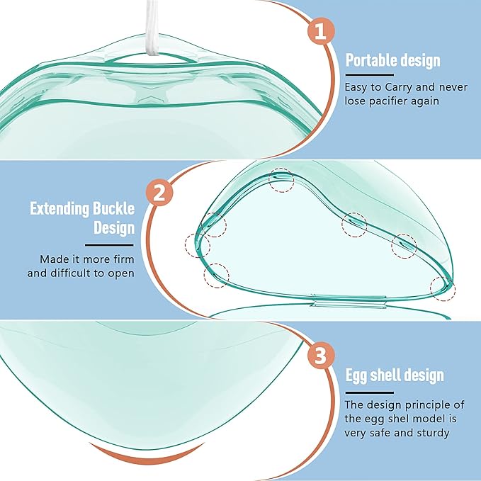 - Strong and Durable Design: 7 buckle design makes the pacifier box not easy to open even if it falls. The egg -shaped design makes the overall stress more uniform.Even if it was fell down from 100 meters,it was unscathed