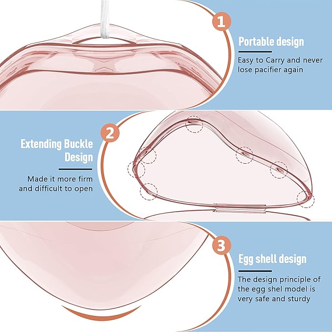 - Strong and Durable Design: 7 buckle design makes the pacifier box not easy to open even if it falls. The egg -shaped design makes the overall stress more uniform.Even if it was fell down from 100 meters,it was unscathed