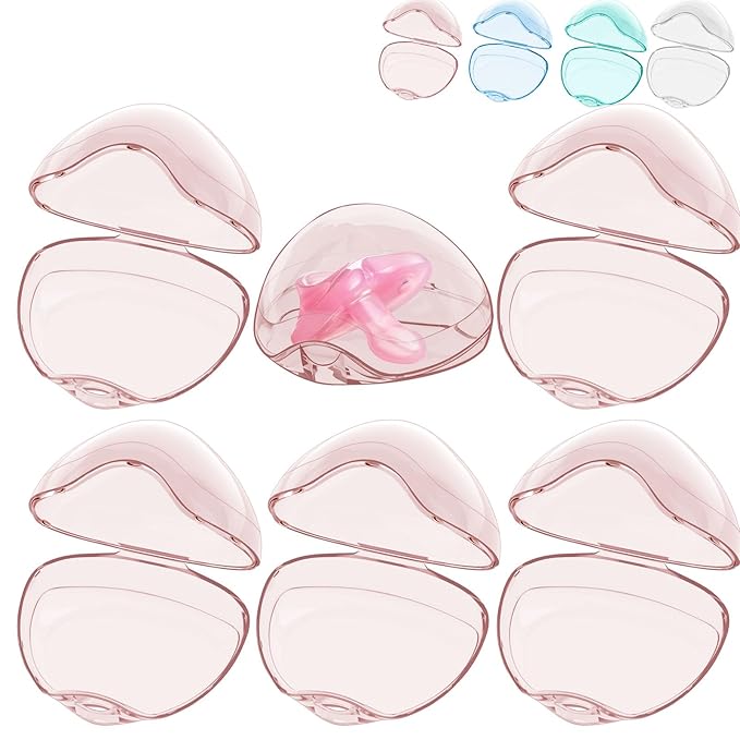 Smlpuame Pacifier Case,6 Pack BPA Free Pacifier Holder Case,Transparent Container Box for Baby Binky(Not Included),Essential Pacifier Accessories,Alway Keep Paci Clean,Easy to Clean(Pink)