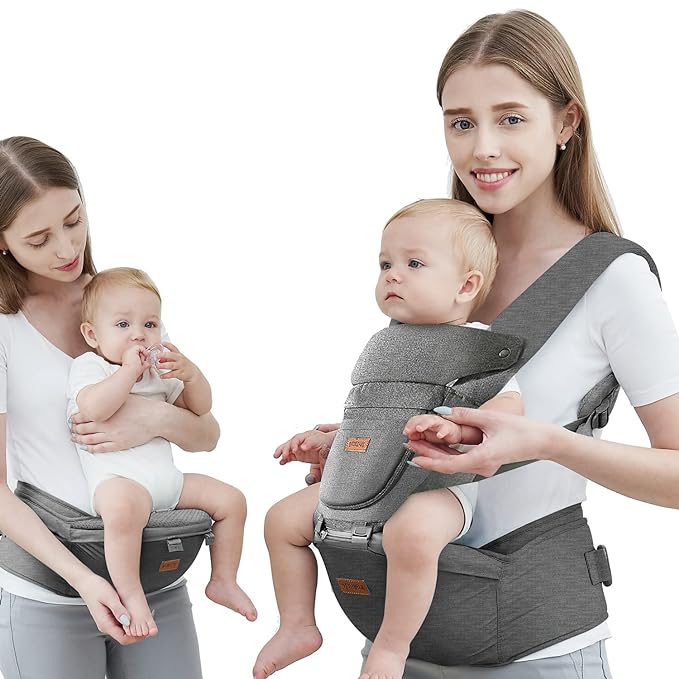 Baby Carrier with Hip Seat, Baby Carrier Newborn to Toddler, 6-in-1 Ways to Carry, All Seasons, Adjustable Baby Holder Carrier for Breastfeeding(Grey)