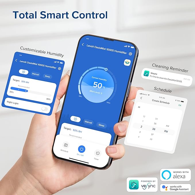 - ๐๐๐๐ค๐ง๐ฉ๐ก๐๐จ๐จ ๐๐ข๐๐ง๐ฉ ๐พ๐ค๐ฃ๐ฉ๐ง๐ค๐ก: With the Vesync App, set schedules according to your routines, and customize humidity for your family. Create your personalized humidification plan