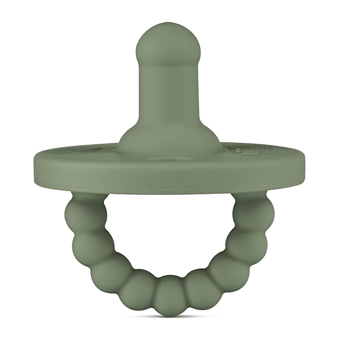 - CONVENIENT COMBO DESIGN – Both a pacifier and teething toy for developing babies. Attaches easily to a paci clip when desired. When used as teether, nipple can quickly be tucked away.