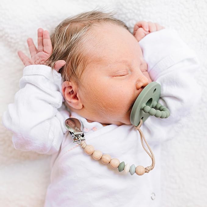 - SOOTHING AND COMFORTABLE – Soft nipple on baby paci gently mimics breastfeeding for natural palette development while soother feels good on baby's gums.