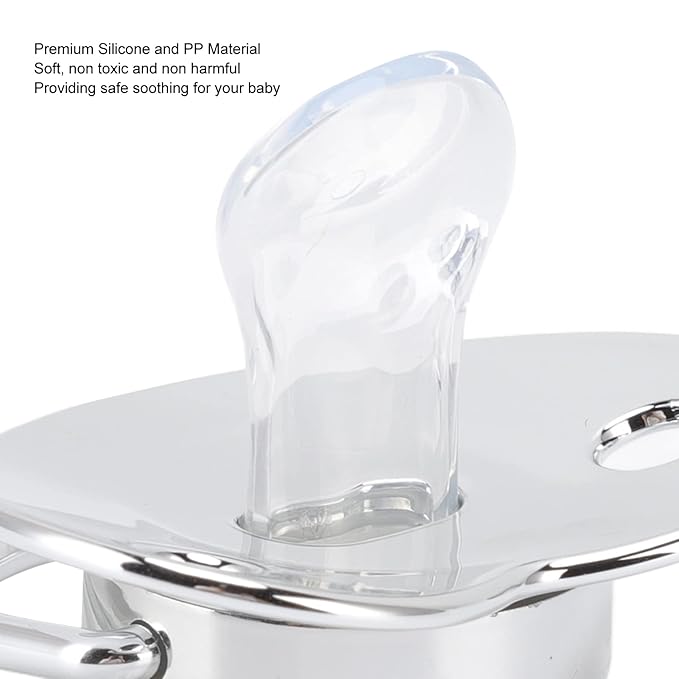 - STYLISH: Stylish and modern infant pacifier for baby showers, christenings, gender reveals, party photo shoots and more. Suitable for babies from 6 to 18 months.