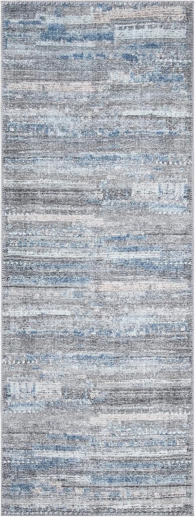 Bloom Rugs Washable Non-Slip 12 ft Runner - Gray/Blue/Blush Modern Abstract Runner for Entryway, Hallway, Bathroom, and Kitchen - Exact Size: 2.5' x 12'