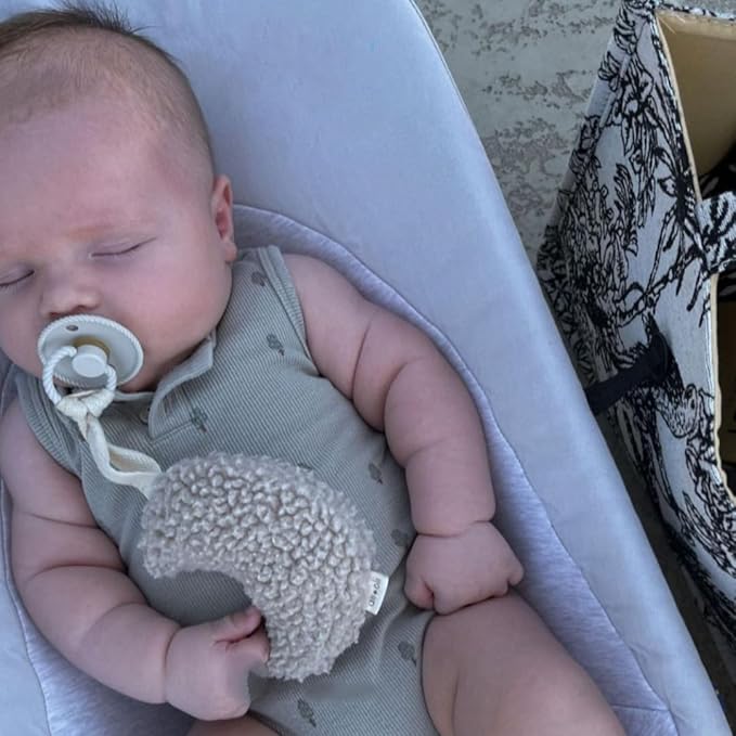 - BABY PACIFIER HOLDER: Our Ali+Oli moon plush pacifier holder is meant to keep baby’s binkies and teethers close, clean, and off the floor. It also serves as an instant toy for babies, helping them learn to self-soothe and adapt to the unfamiliar environment around them.