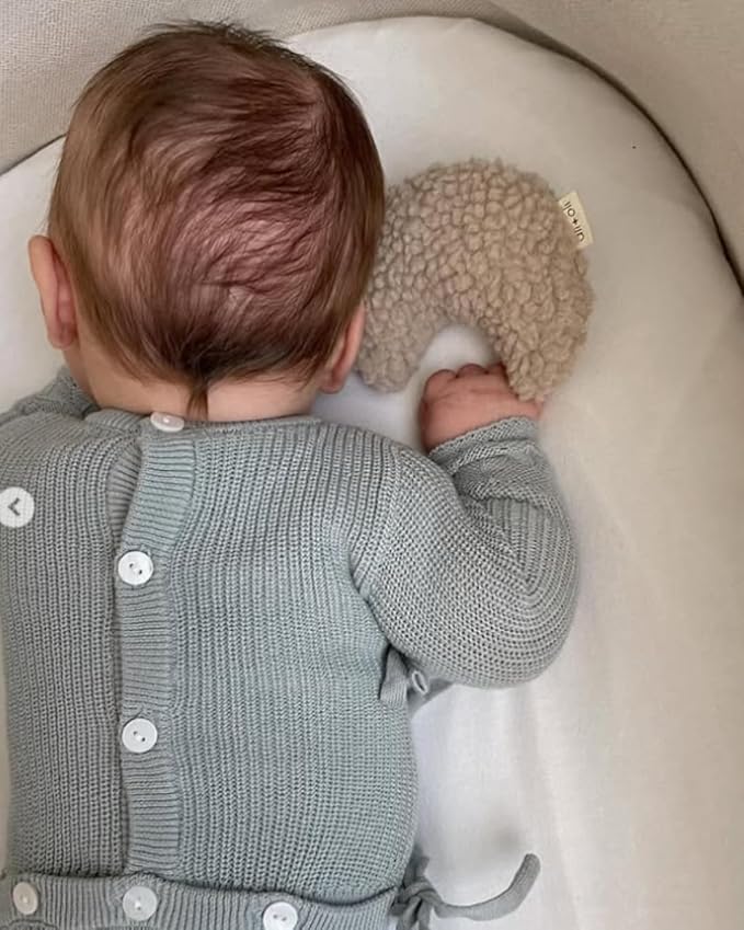 - ADORABLE DESIGNS: This plush toy is a convenient and practical tool for parents to use when caring for their baby. It comes in two attractive designs, star or moon, and two color options, sand or white. Easily use it as cute decor for your baby's nursery, and machine wash it on a cold cycle.
