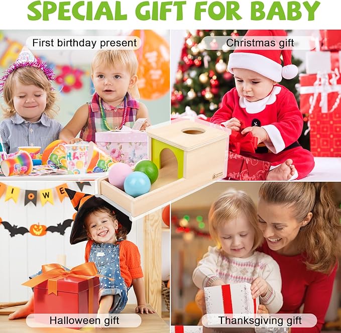- đăSuitable as a Thoughtful Giftă: The Montessori Object Permanence Box with Tray and Three Balls makes an ideal and thoughtful gift for infants between the ages of 6 to 12 months. Its educational value, coupled with its visually stimulating design, makes it a wonderful present that encourages learning, exploration, and development in young children.