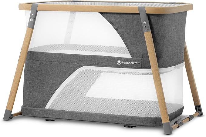 - STYLISH: the SOFI baby cot features a beautiful design. The classic gray is broken up by the bright wood tones, and the white mesh makes it look light and sleek