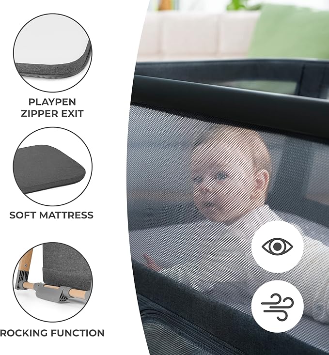 - FUNCTIONAL: the portable bed comes with a comfortable mattress with a cover that can be easily removed and cleaned. The rocking frame can be locked and unlocked to the rocking function, and the fact that you don't need tools to change between functions and fold makes SOFI perfect for both trips and at home