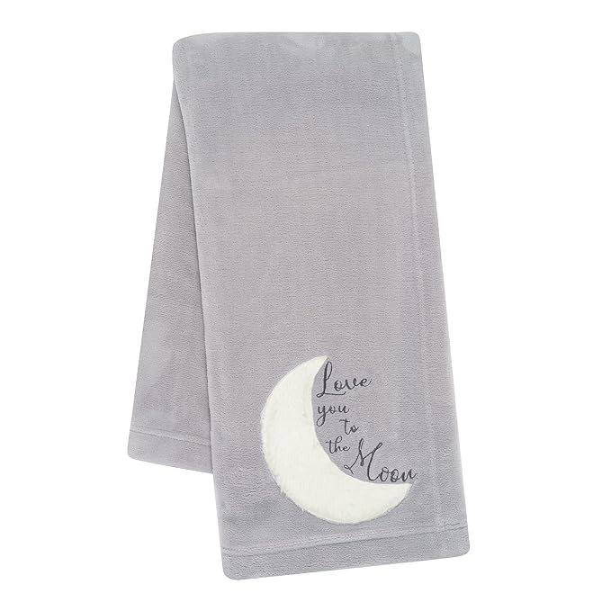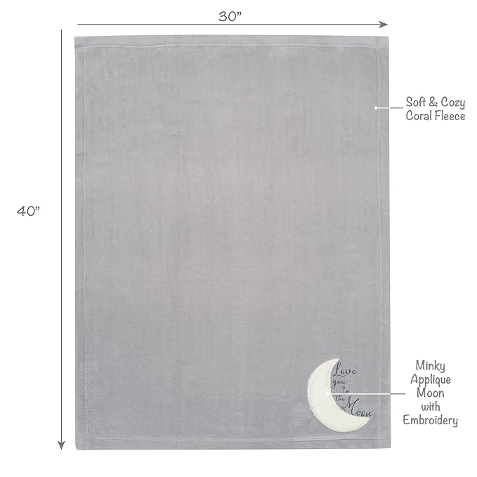 - Special Feature : Appliqued crescent moon, embroidered words 'Love you to the moon', soft and durable fleece material, expertly done embroidery, machine washable Appliqued crescent moon, embroidered words 'Love you to the moon', soft and durable fleece material, expertly done embroidery, machine washable