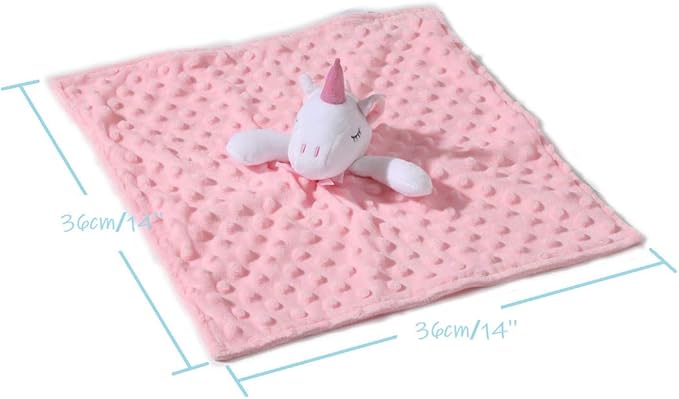 CREVENT Cozy Plush Baby Security Blanket Loveys for Baby Girls, Minky Dot Front + Sherpa Backing with Animal Face (Pink Unicorn + Tag)