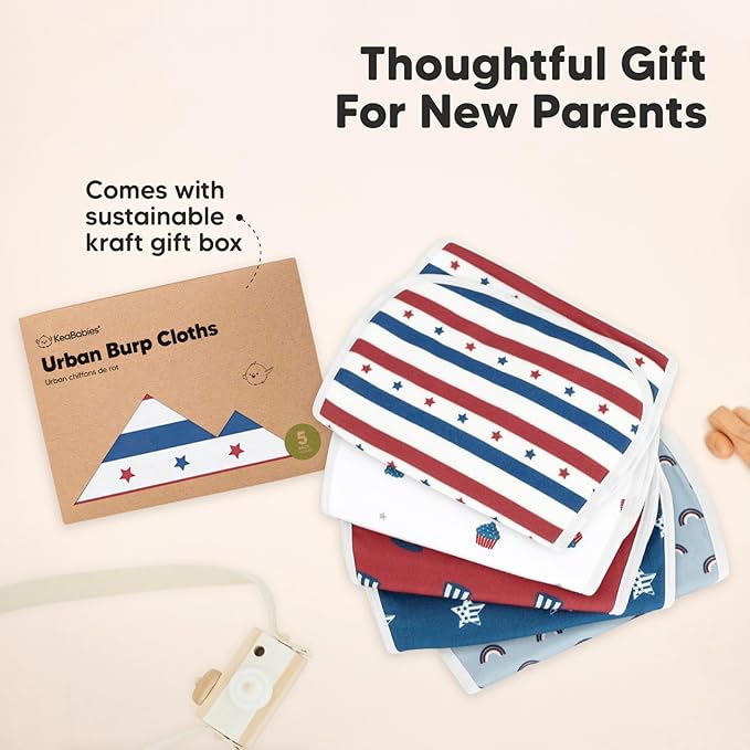 - 5-pack Organic Burp Cloth Set – Parenthood is a wonderful adventure. We designed KeaBabies Urban Burp Cloths to help you and your little one stay close, fresh and comfy and enjoy more bonding moments.