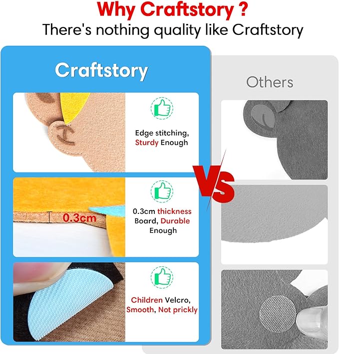 - More Choices for KIDS EDUCATIONAL TOYS- Educational toys include 6 flannel face boards, 116 pieces expression elements ( 18 pairs of eyes, 18 pairs of eyebrows, 14 noses, 18 mouths, 4 pairs of cheeks. More facial expressions, more accurately describing feelings and using more vocabulary to describe their feelings. Great educational toys for toddlers 1-3.