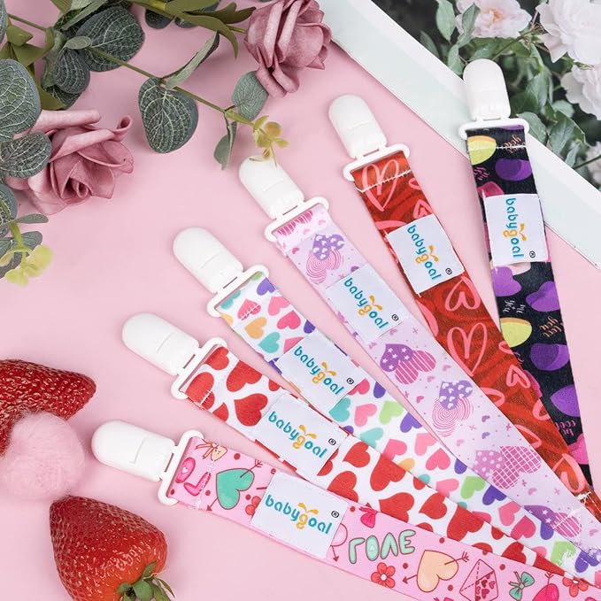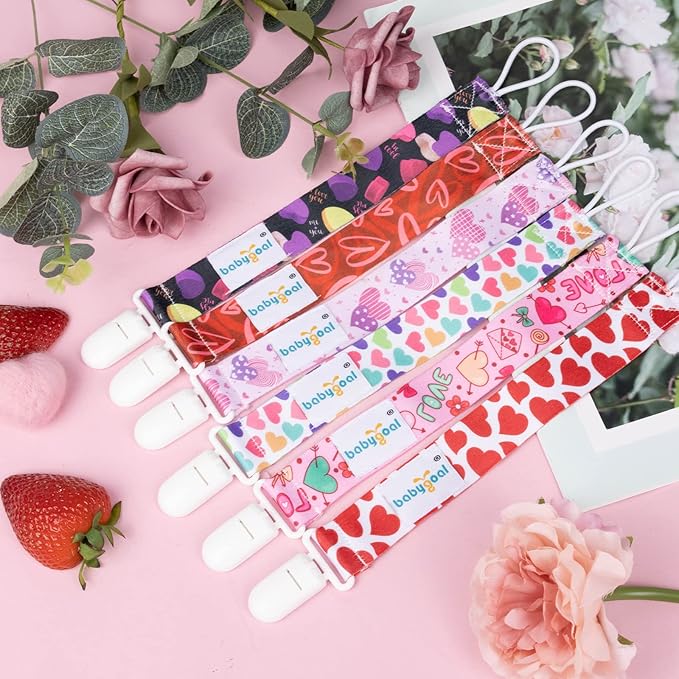 Babygoal Heart Pacifier Clips, 6 Pack Binky Paci Holder and Leash for Boys and Girls Fits for Most Pacifier, Binkie Styles & Baby Teethers & Toys and Valentine's Day Gift 6PB24