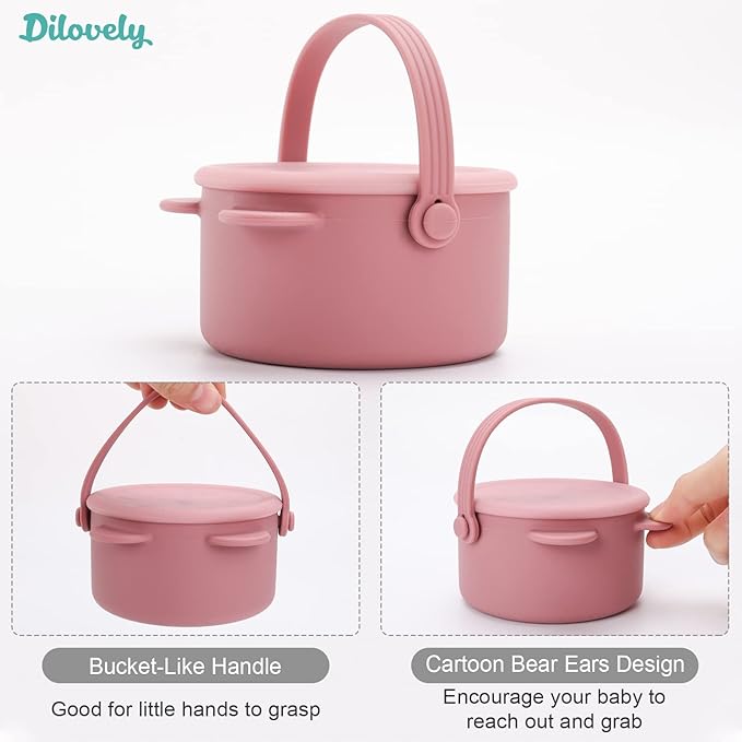 - SAFE FOR BABY: The Dilovely snack cups for baby is made out of food grade silicone, free from BPA, BPS, PVC, lead & phthalates. This kids snack container thoroughly tested by a third-party lab. Safe baby essential for self-feeding.