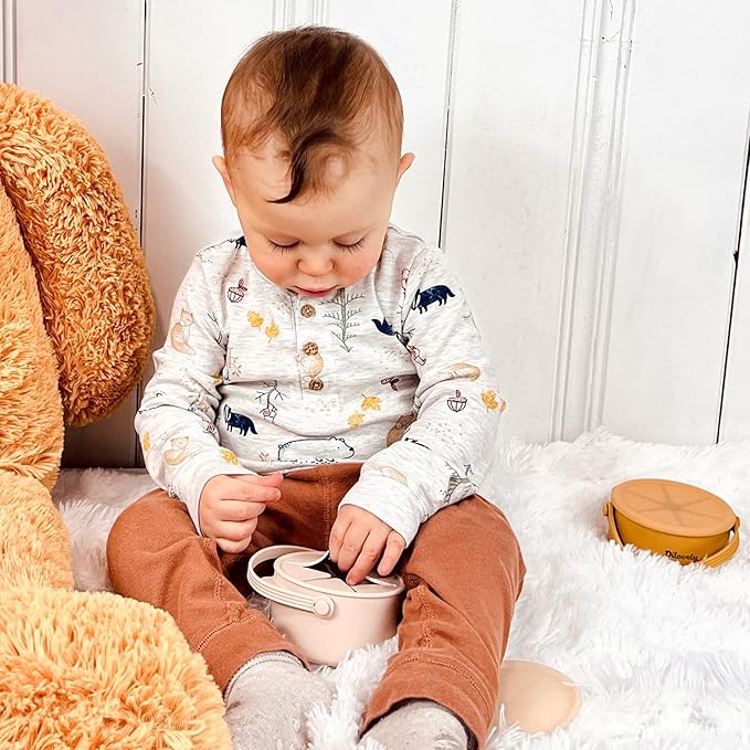 - EASY CLEAN: The snack bowls for toddlers is easily cleaned by hand or a dishwasher. We recommend cleaning the snack cups with lids with unscented, natural detergent since Silicone can absorb scents.