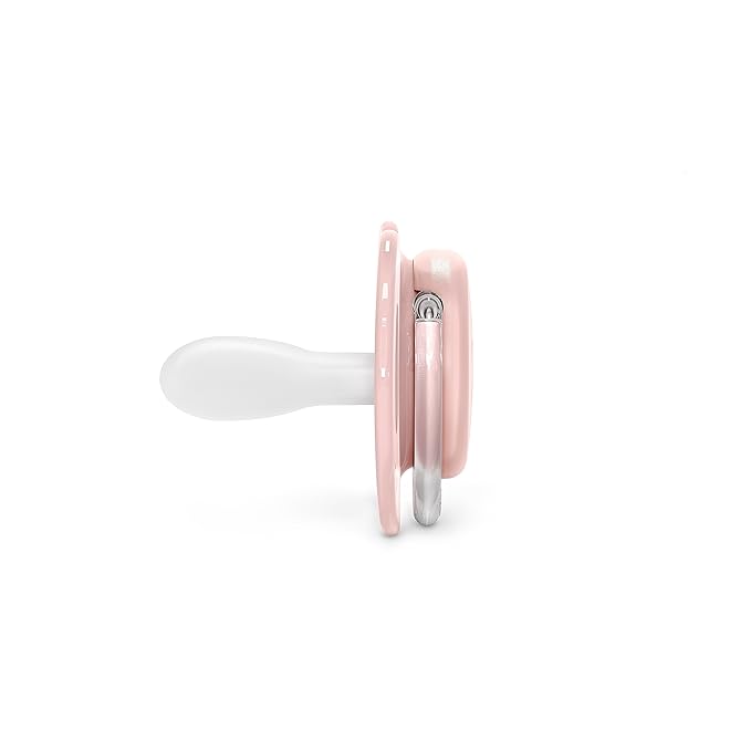 - Thinner, wider neck on baby pacifier enables the mouth to remain almost completely closed & better distributes pressure on the gums/teeth. Ventilation holes on baby pacifier for added safety.