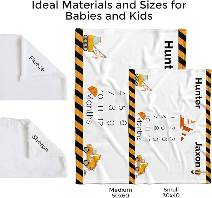 MDPrints Global Personalized Twin Milestone Blanket, Custom Monthly Baby Blankets with Name for Boys and Girls, 30x40 & 50x60inch Soft Plush Fleece (Tractor 536)