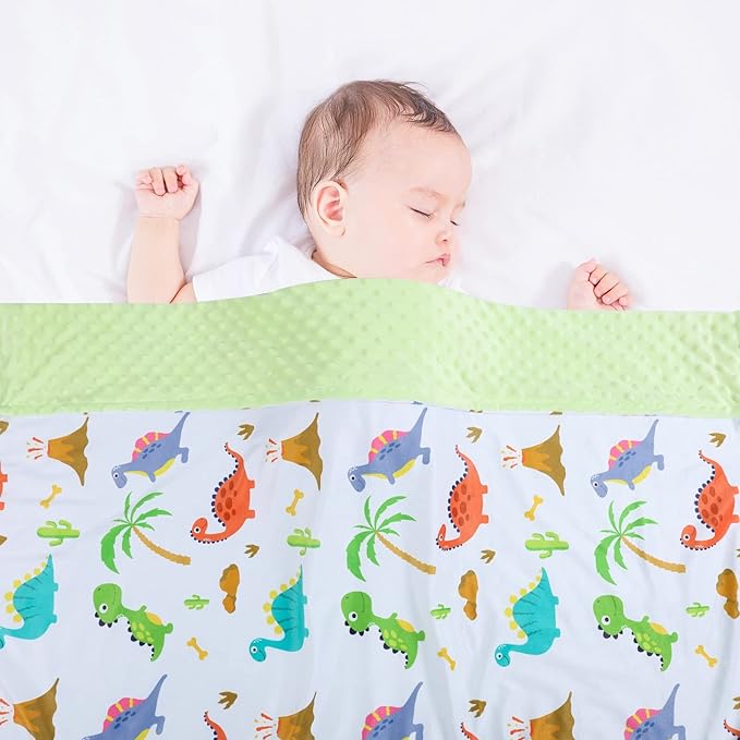 - 1.【Warm & Cosy】We use super soft minky fleece. Double-sided reversible design offer you different soft with one side of smooth and 3D dotted to the other. Light and breathable, warm and cosy,like mother's touch,will help calm little ones. Treat children to restful naps and cozy nights. suitable for baby boy or baby girl.