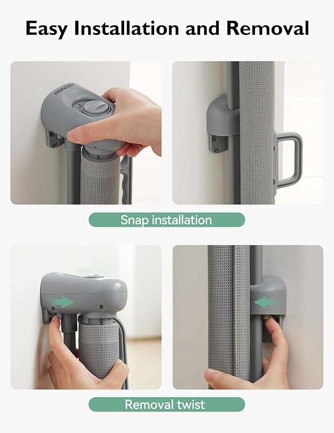 - Automatic Locking Function: a locking device at the top of the mesh gate that can be pressed to unlock it, and it will automatically lock after hanging the handle for about 15S to prevent forgetting to lock the second lock causing the mesh to not be pulled tight. Perfect solution for doorways and stairs, locking the way for babies and pets, providing security for the whole house, stair gates for children and pets blocking their way out or in and out.
