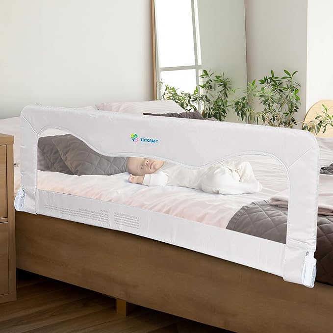 - 【Compatibility & Universal Fit for most bed types & sizes】: TotCraft Bed safety Rail Guard works with slatted beds, box springs or wooden base beds. Also suitable for Cribs, Queen beds, Double twins, king size beds, Single mattresses, Toddler beds, Tempurpedic beds, Bunk beds, full size beds, Twin beds, Double mattress, and Twin mattress.