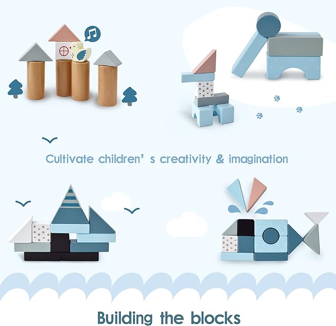 - Montessori 2-in-1 Learning: 33 beechwood blocks add ballast for stability and double as shape&color sorters that build fine-motor skills