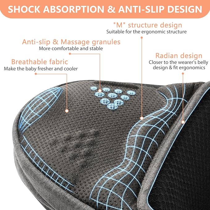 - Ergonomic Design for Baby’s Comfort: Non-slip, shock-absorbing hip seat maintains baby’s hips in an ergonomic "M" position; a 30-degree angled seat brings the baby closer to the parent, ensuring a secure and comfortable carry