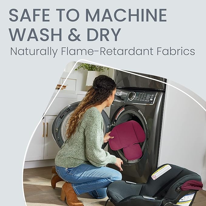 - MACHINE-WASHABLE CAR SEAT COVER AND INSERT: The SafeWash car seat cover and stroller insert only are naturally flame-retardant and safe to machine wash and dry