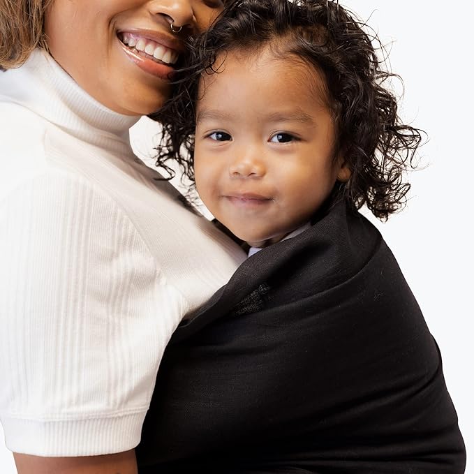 WildBird Ring Sling Baby Carrier for New Moms & Dads & Caregivers - Made from 100% Belgium Linen - for Newborns to Toddlers Up to 35 lbs - Long 90" Size (Raven Fabric/Bronze Ring)