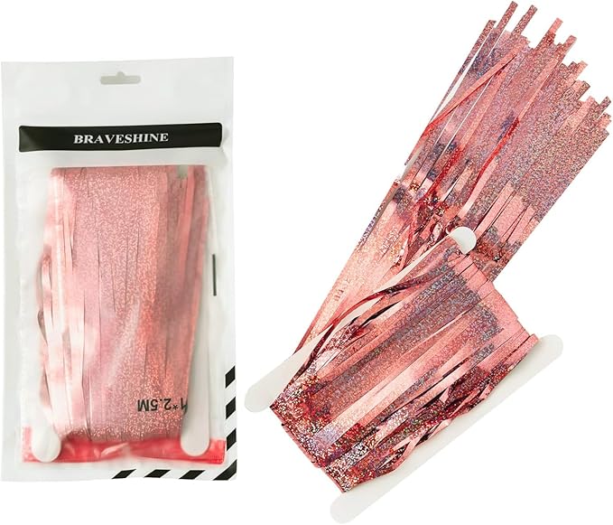 BRAVESHINE Rose-Gold Metallic Tinsel Backdrop - 2Pcs 3.2x8.2ft Metallic Tinsel Foil Fringe Curtains Photo Booth Streamers for 21-st Birthdays Bachelorette Engagement Bridal Shower Party Decorations
