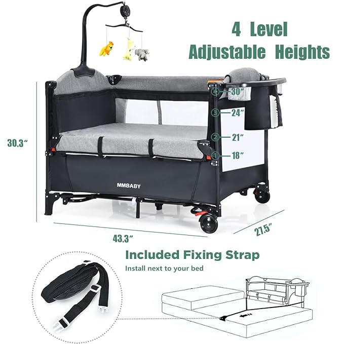 - 🎈【5-in-1 Bed Side Sleeper】 This multifunctional baby pack n play can serve as a baby rock bassinet, bedside crib, activity center, U-shaped diaper changing table, and baby crib. Whether it provides a comfortable resting place for your cute baby, or daily activities and care, this 5-in-1 crib is the best choice. Other than that, the U-shaped diaper changing table comes with a safety belt to prevent the baby from rolling off.