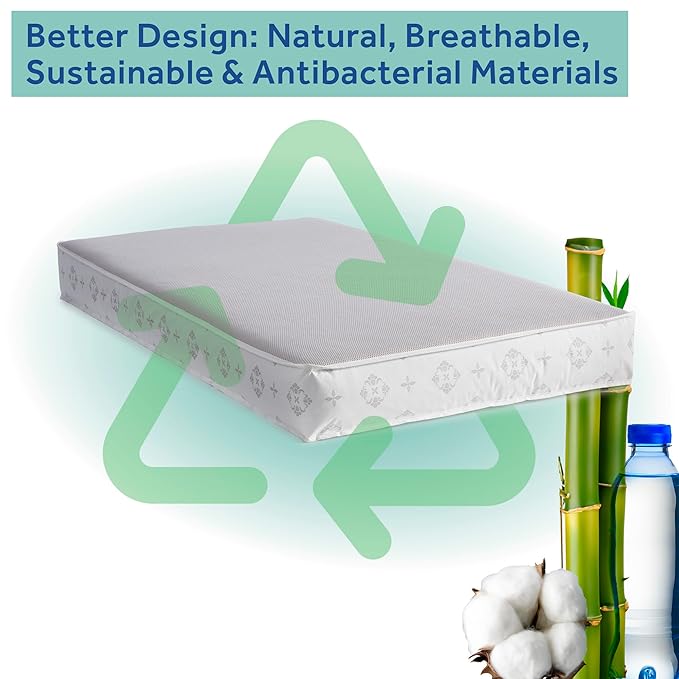 - Dual-Sided Crib Mattress for Infant and Toddler Use - Features a breathable infant side with a silky rayon from bamboo cover and a waterproof, hospital-grade antibacterial toddler side for hygienic sleep.