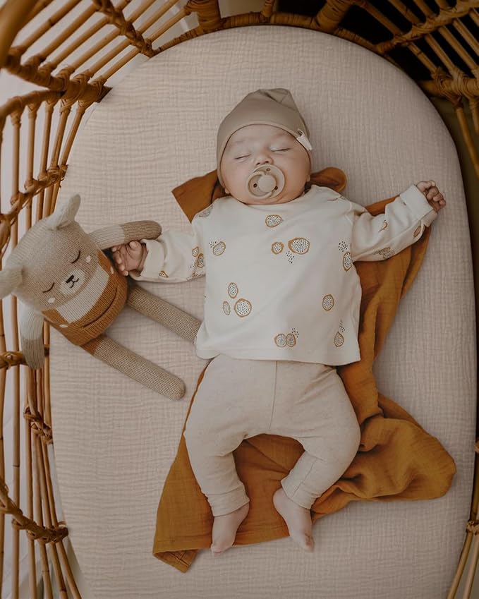- Premiun Muslin Cotton: Made from muslin cotton, our bassinet sheets are cozy and breathable in all seasons, making babies a better sleep. Plus, the soft muslin material is friendly for your baby's delicate skin