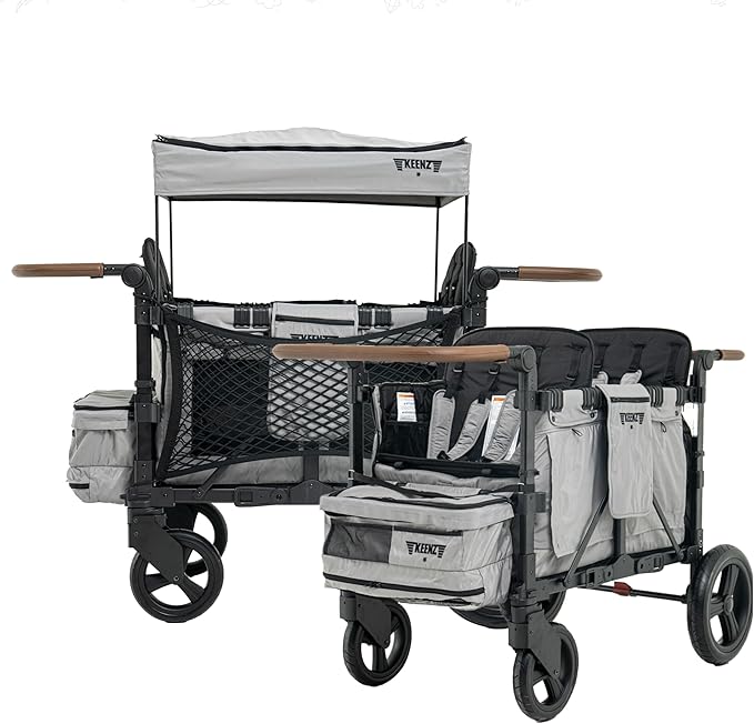 Keenz XC+ EVO - Luxury Comfort Stroller Wagon | Foldable 4 Passenger Quad Seater with Adjustable Canopy | Grey