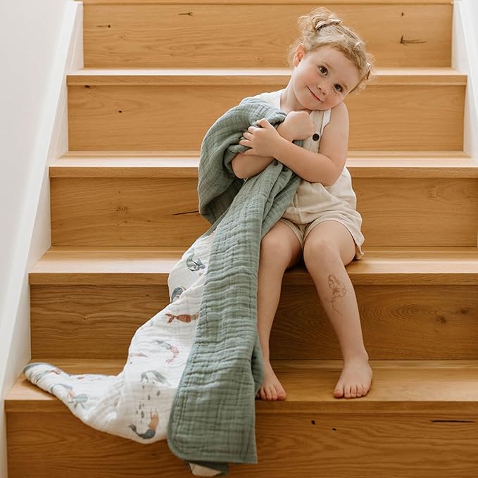 - Made with 4 layers of 100% cotton muslin for softness, warmth and comfort