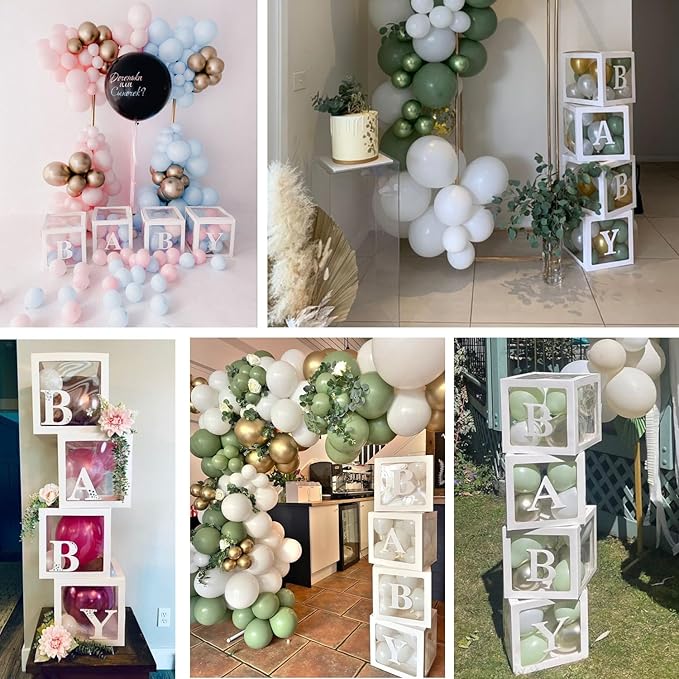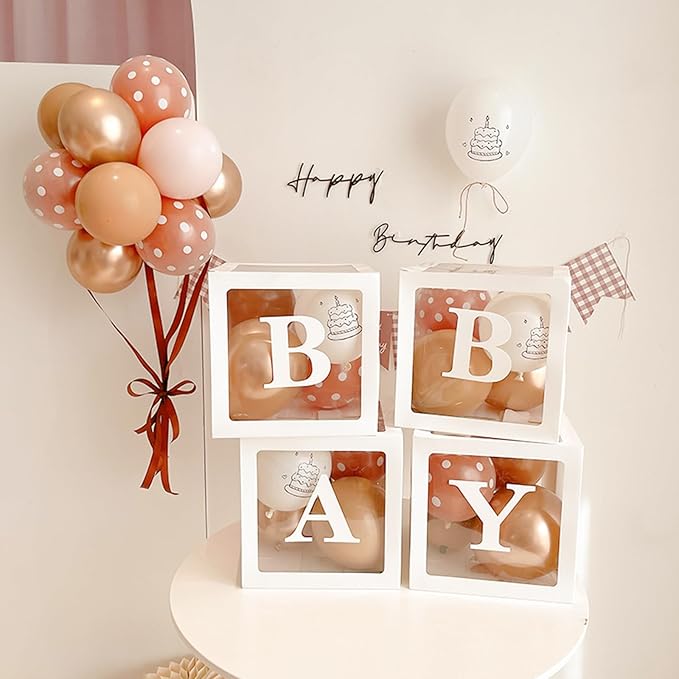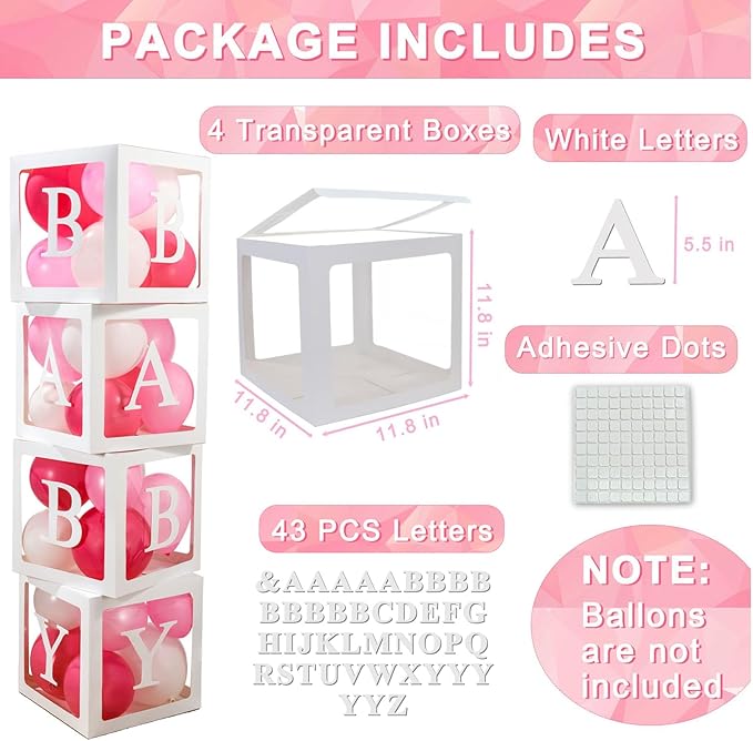 Baby Boxes with Letters, Clear Balloon Boxes for Baby Shower, White Transparent Block Babyboy Letter Boxes for Birthday Bridal Wedding Graduation Prom Party Gender Reveal Party Decor, 4 PCS