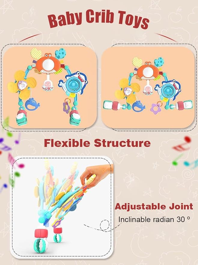 - Car seat toys,It is an early development toy.crib toys hanging made of washable materials.Each stroller toy can be detachable dsassembled and played separately.