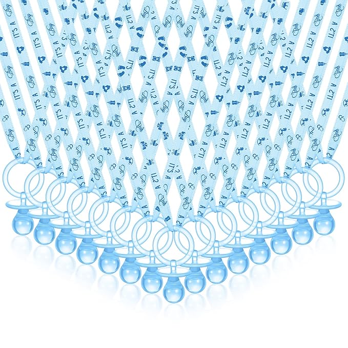 Chengu 100 Pcs Baby Shower Pacifiers Necklace, Acrylic Pacifiers Necklace Party Favors for Girls Boys Baby Shower Party Decorations Table Scatter(Blue)