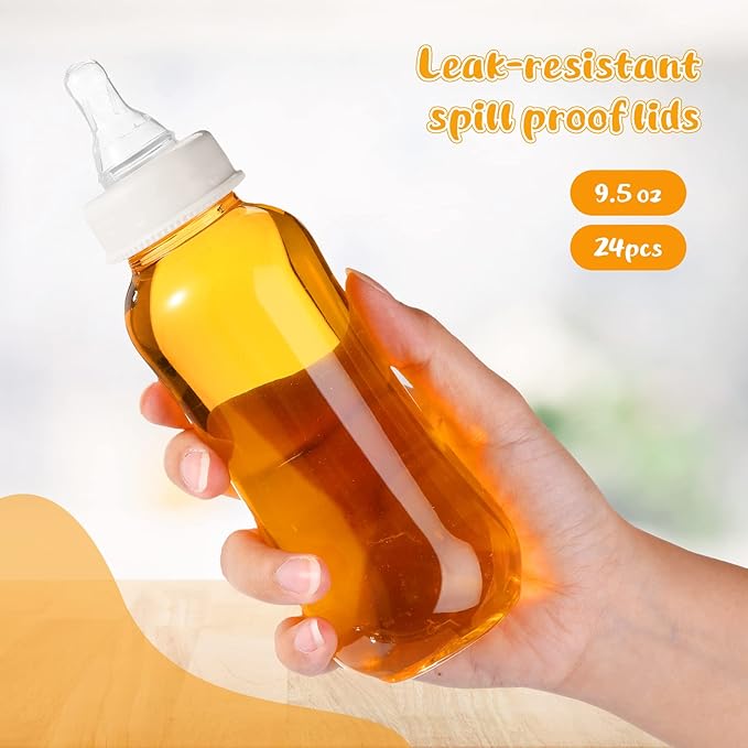 - Clear Design: these plastic baby bottles for baby shower are clear and convenient for people to see things or liquid inside, can not only avoid people drinking too much at once and enjoy a pleasant drinking time, but can add a decorative touch when you fill the bottle with colorful food