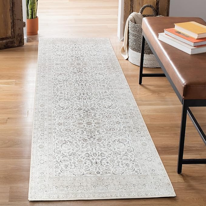 Bloom Rugs Washable Non-Slip 10 ft Runner - Beige/Off White Traditional Bordered Runner for Entryway, Hallway, Bathroom, and Kitchen - Exact Size: 2.5' x 10'